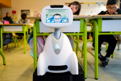 Rillieux-la-Pape (France) (AFP) - "Tu as trouvé quel résultat Melvin ?" : Melvin, 8 ans, immobilisé chez lui à cause d'un cancer, participe à un cours grâce à Buddy, un petit robot installé au premier rang de sa classe de CE2, dans la banlieue lyonnaise.